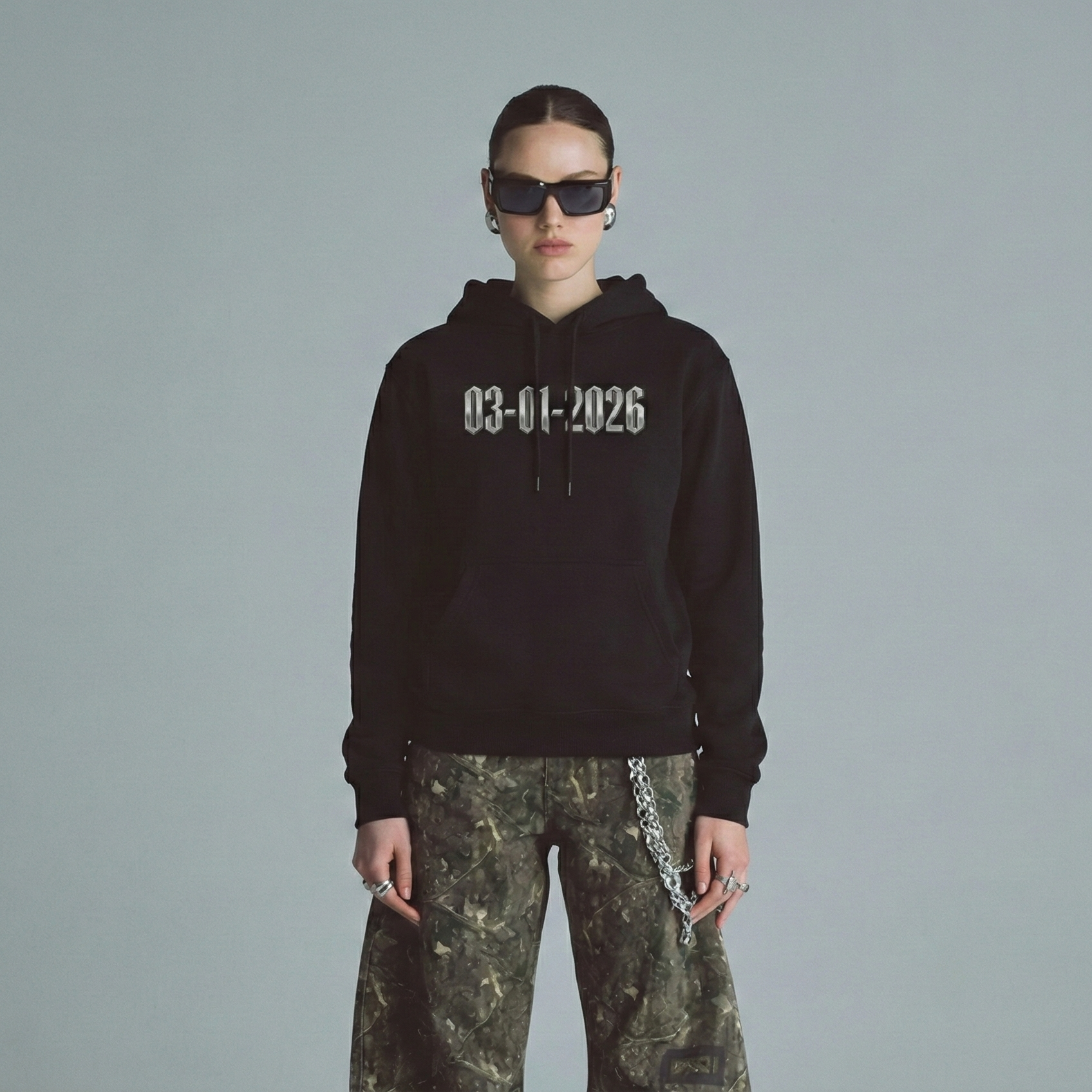 Capucha doble con cordones y remaches metálicos diseñados para conservar su forma y ajuste, aporta una caída estructurada y elegante. Los detalles metálicos añaden un toque premium y mayor resistencia al desgaste del uso constante.